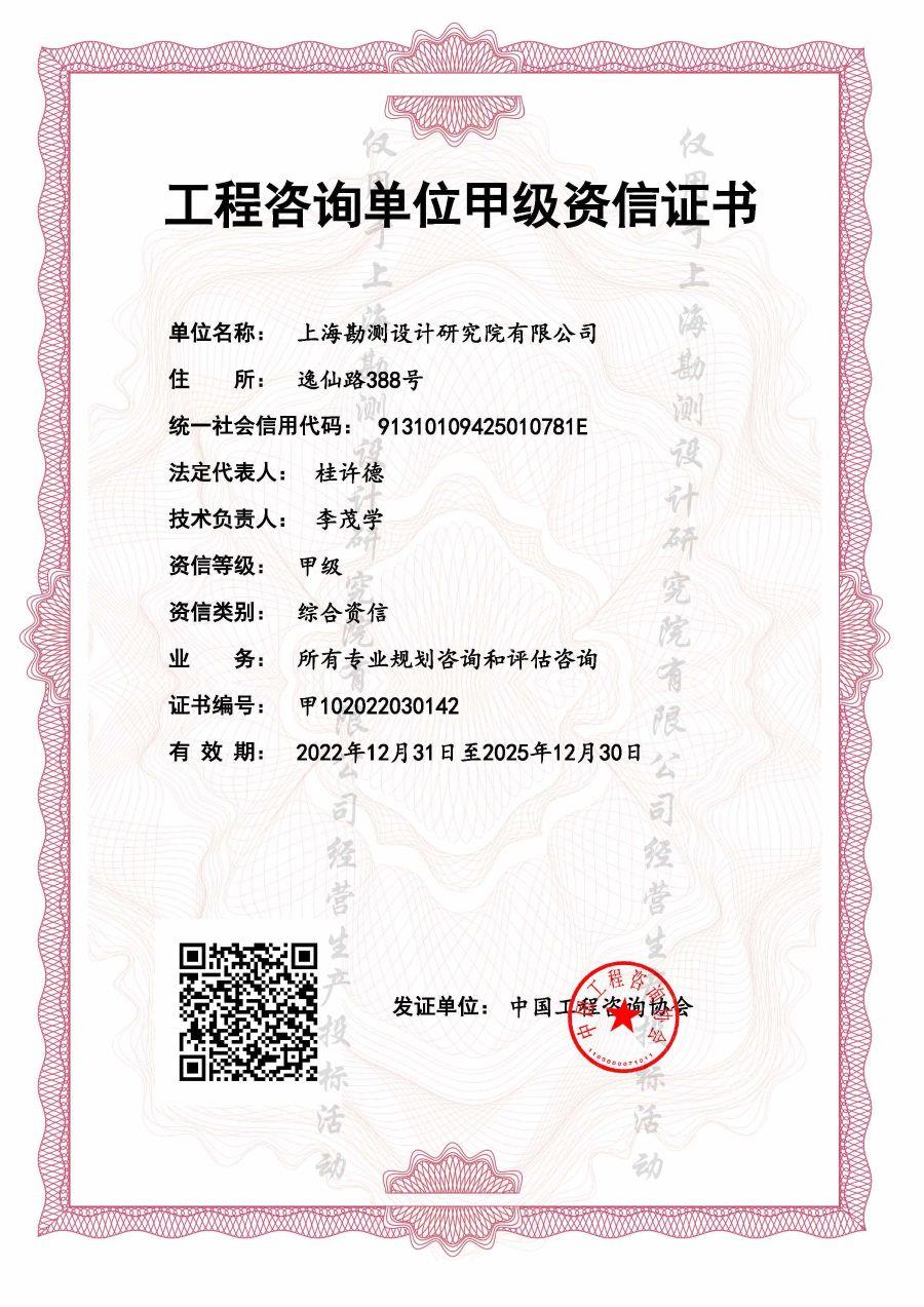 工程咨詢單位綜合甲級資信評價